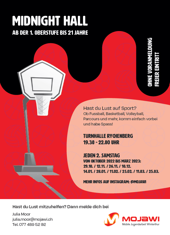 Die mojawi organisierte Streetsoccerturniere im öffentlichen Raum (teils in Zusammenarbeit mit dem Verein Glattwägs). Diese waren bei zahlreichen Jugendlichen sehr beliebt und jeweils gut besucht. Die Turniere waren ein sinnvolles, kostenloses und niederschwelliges Angebot, welches die Förderung der Selbst- und Sozialkompetenz, faires Verhalten, Engagement und das Einüben von konstruktiven Konfliktlösungen anstrebte. Die Jugendlichen konnten sich in einem spielerischen und kontrollierten Rahmen messen, zudem fördert Sport die Integration und Gesundheit. Gespielt wurde in verschiedenen Kategorien (2. – 6. Klasse, 7. – 9. Klasse, ü16 und Mädchen) und auf unterschiedlichen Plätzen in den Quartieren von Winterthur. Zur Info für Trainingsbegeisterte: Winterthur verfügt über drei öffentlich zugängliche Minipitch-Anlagen (Wülflingen Hardau, Deutweg, Eulachpark). (Projektende: 2017)